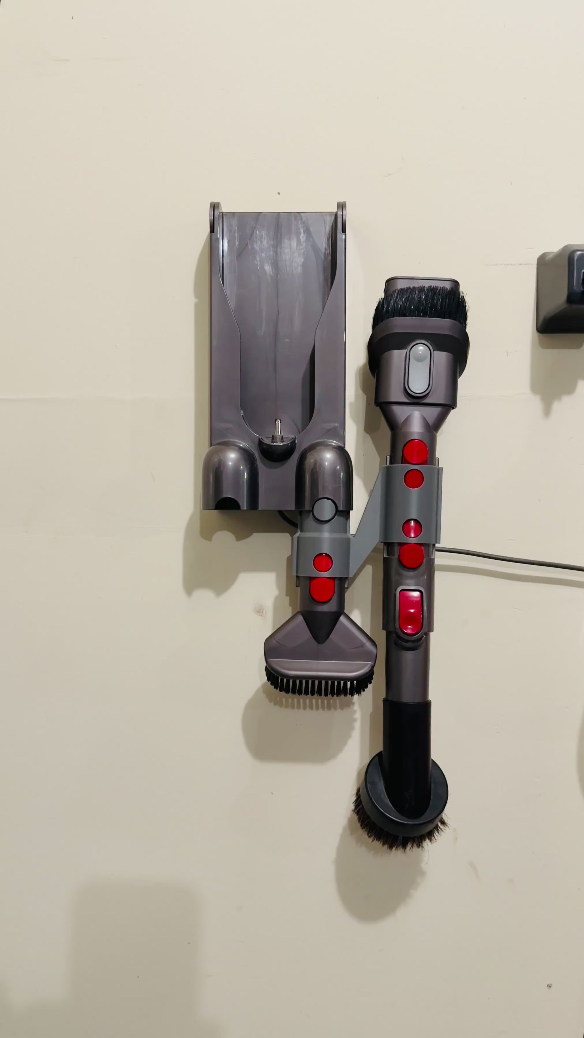 👨🏻🦯 This is the Dyson Attachment Holder that will allow you to easily store your Dyson Vacuum attachments. You will get 2 holders, one for left side and one for the right side. These click right into the wall mount that comes with your vacuum. 👨🏻🦯
