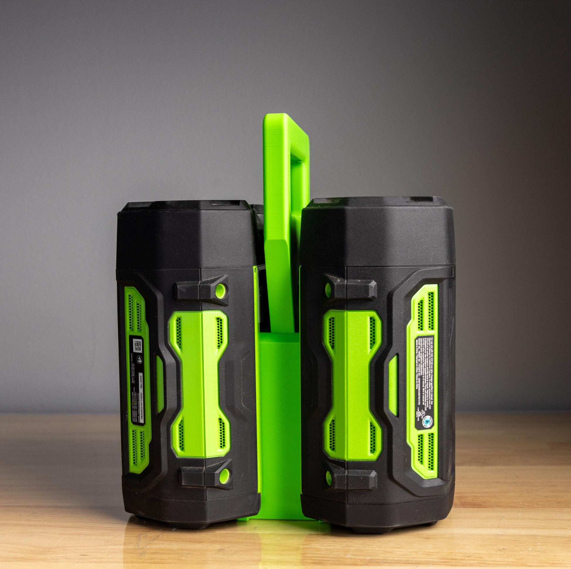 Whether it is 2.5 AH or 12 AH, we have you covered! Carrying two EGO batteries has never been easier. Sleek design to neatly stow away when not in use, this battery carrier provides an attractive and efficient way to move your batteries from point A to point B.