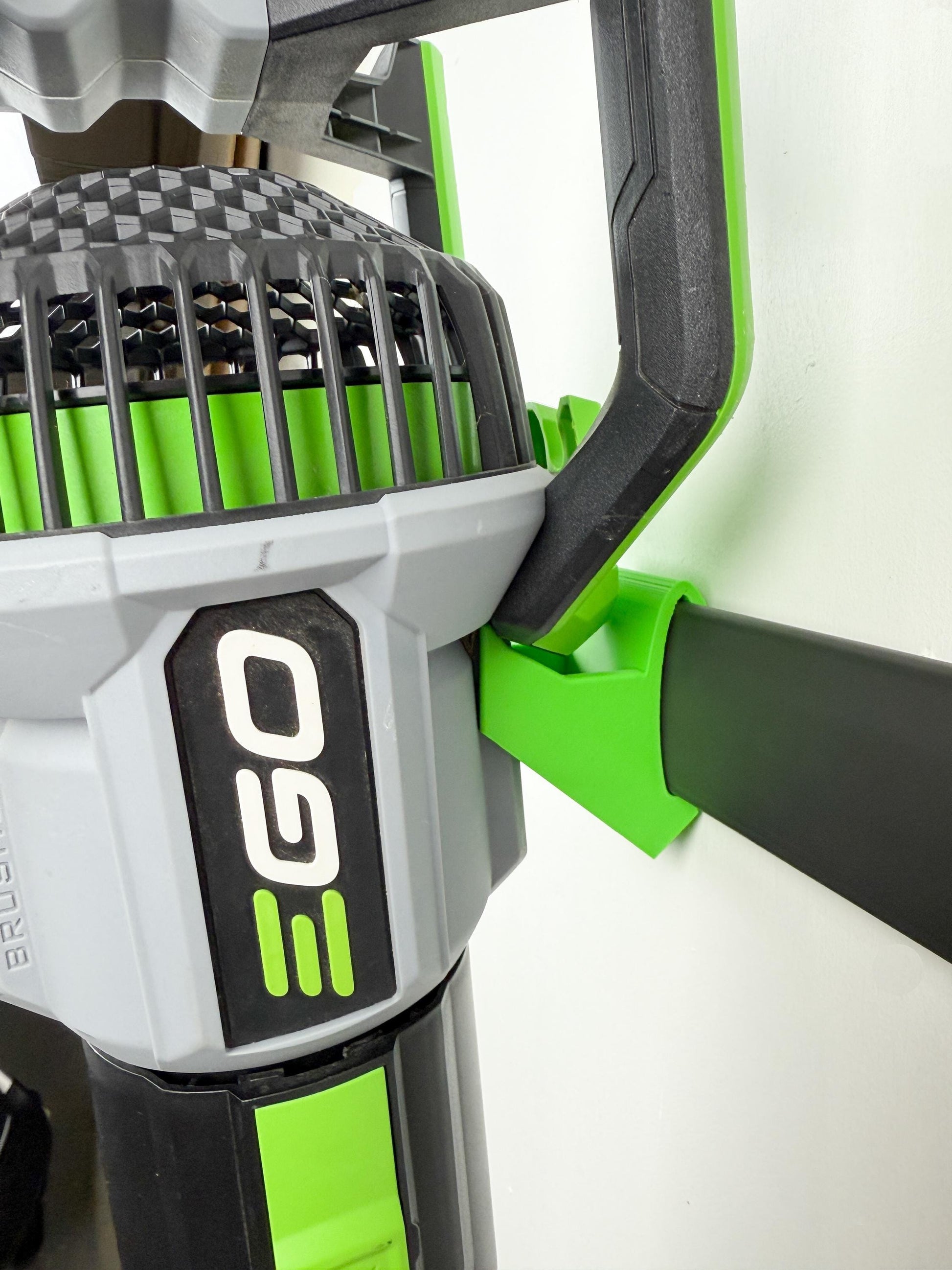 This mount securely holds your EGO 765 CFM Blower on your Rubbermaid Fasttrack system. This is designed to hold your 765 CFM blower so that the nozzle faces down.