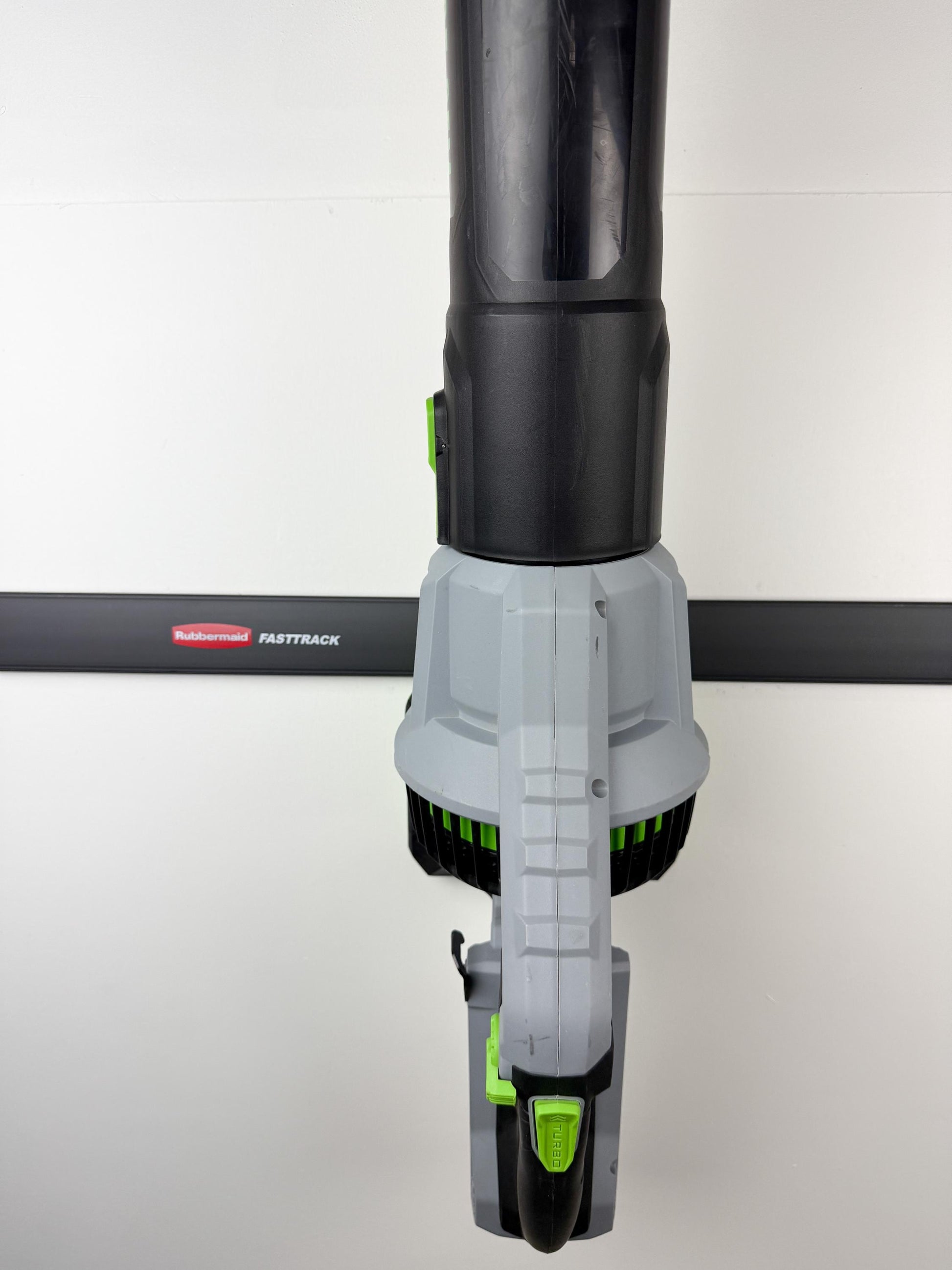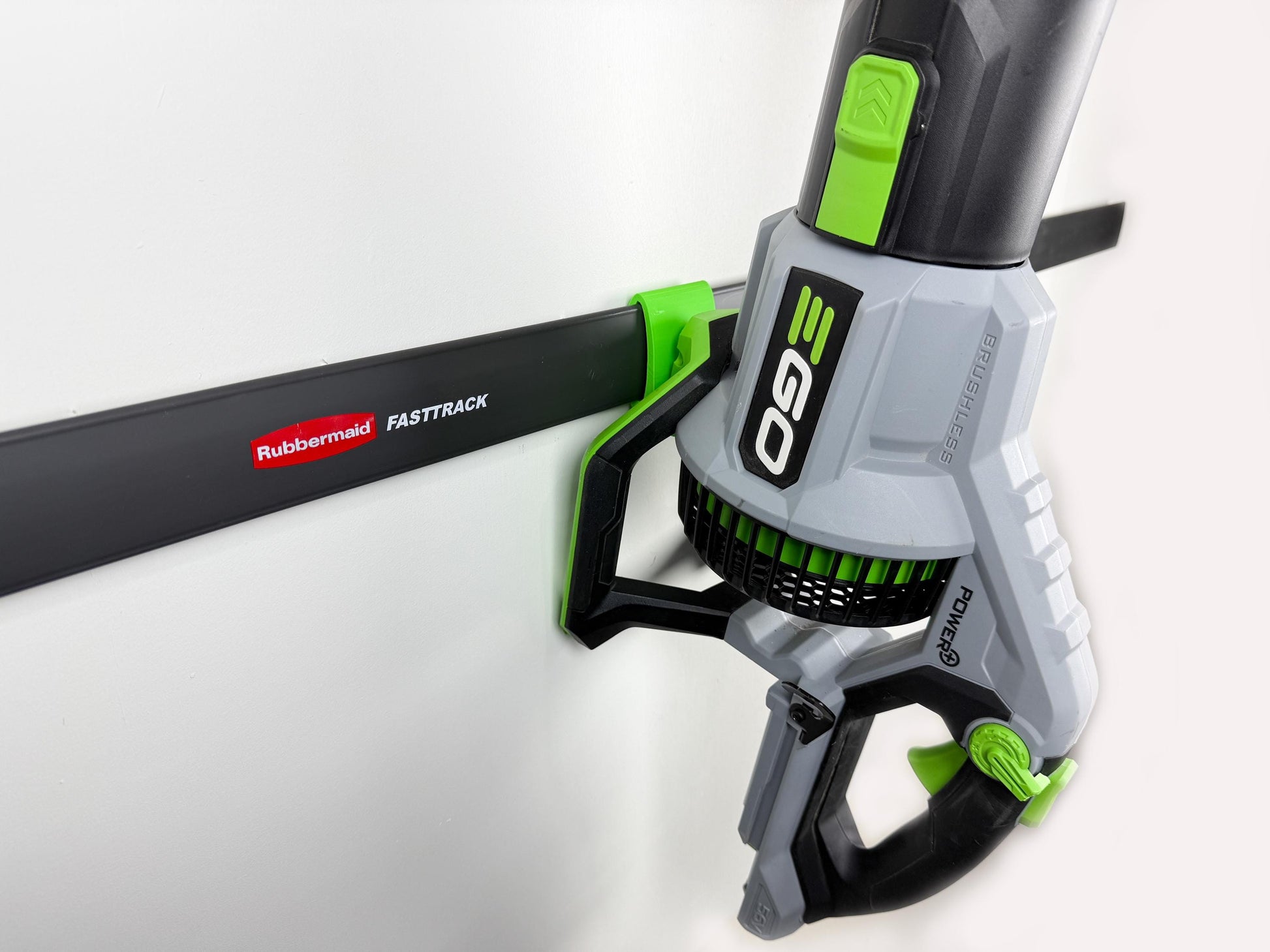 This mount securely holds your EGO Blower on your Rubbermaid Fasttrack system. This design is versatile and can mount the following EGO Blower Models: 580 | 615 | 650 | 670 | 765 | 880 | 1000 CFM